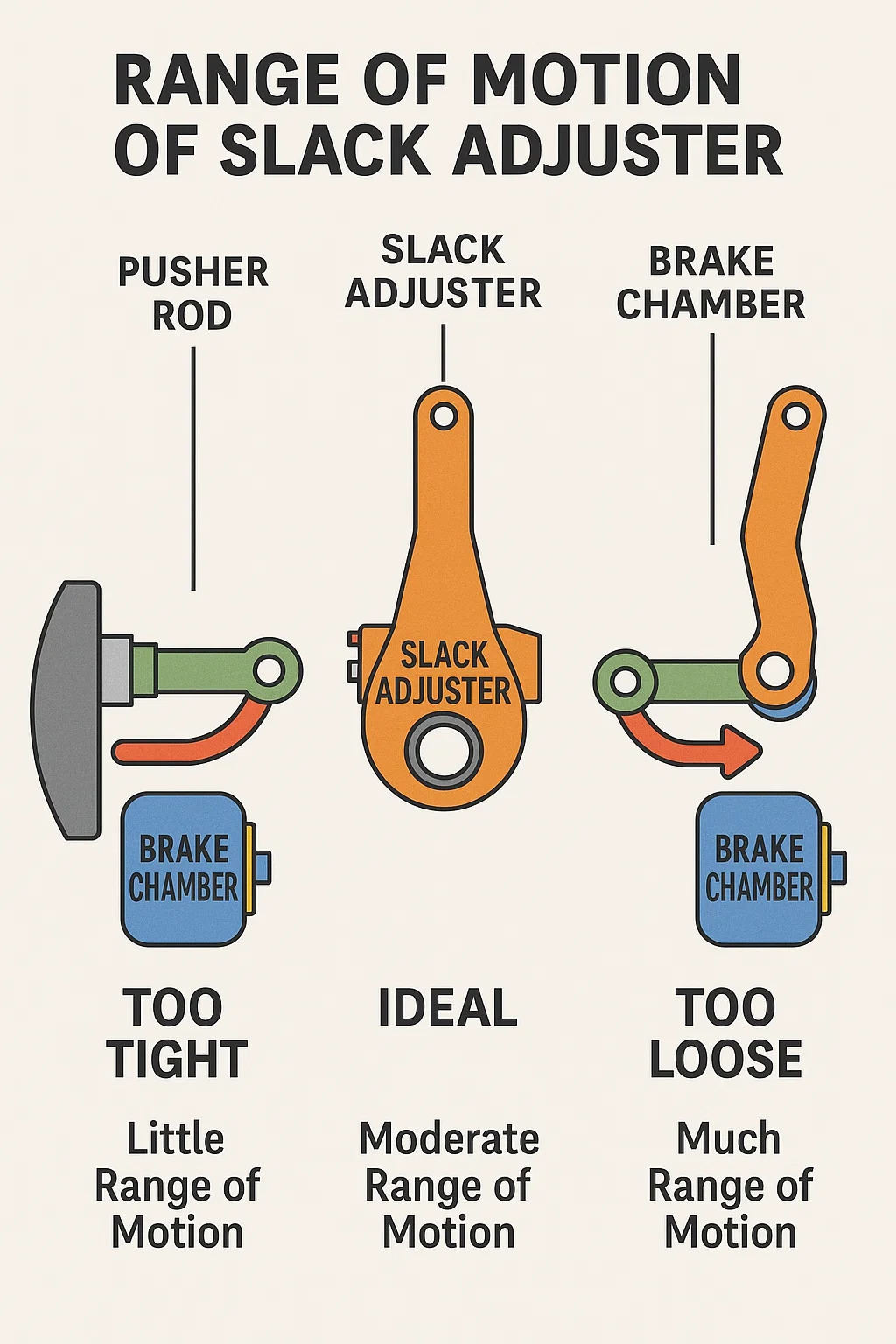 Ang slack adjuster ay hindi dapat magkaroon ng sobra o masyadong maliit na "range of motion."