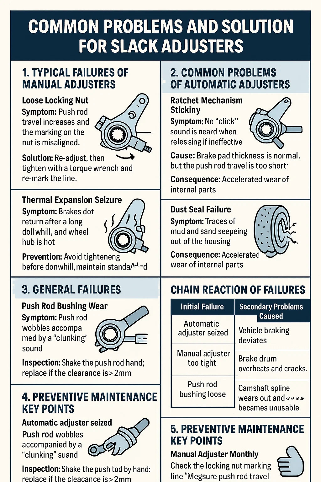 Karaniwang mga problema at solusyon para sa Slack adjusters