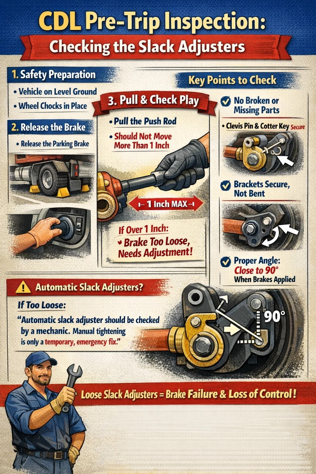 Sa proseso ng pagkuha ng Commercial Driver's License (CDL), ang pre-trip inspection ay isang mahalagang bahagi, at ang inspeksyon ng mga slack adjuster ay isa sa mga bagay na pinakatuunan ng pansin ng mga examiners.
