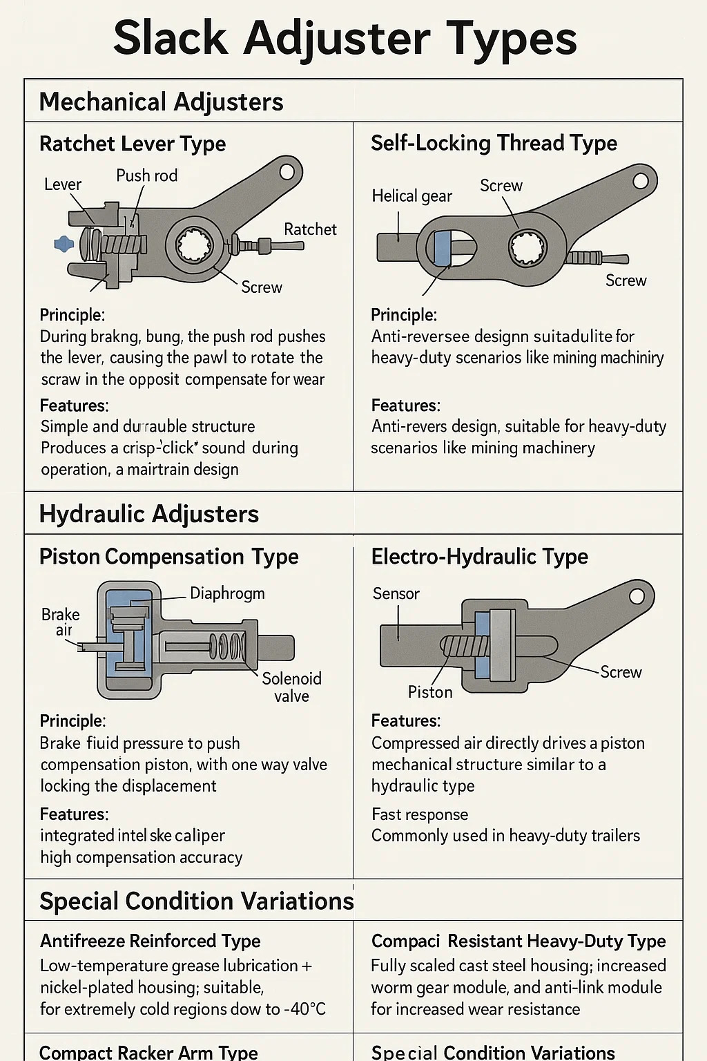 Detalyadong paliwanag ng Slack adjuster Mga uri